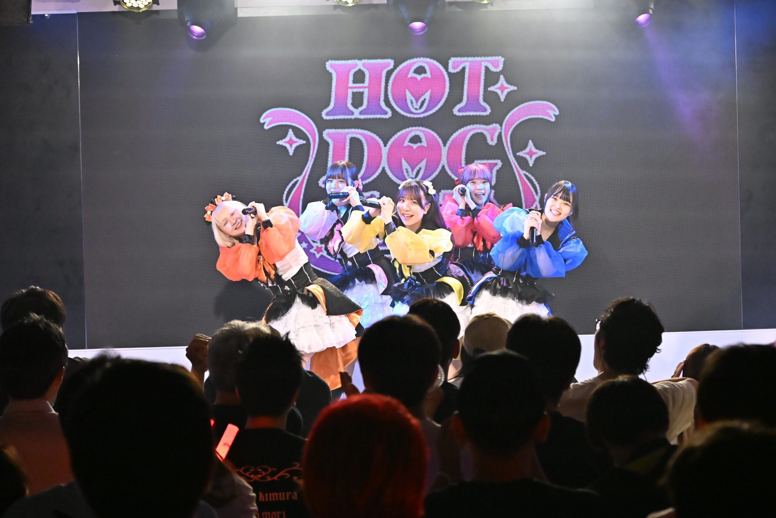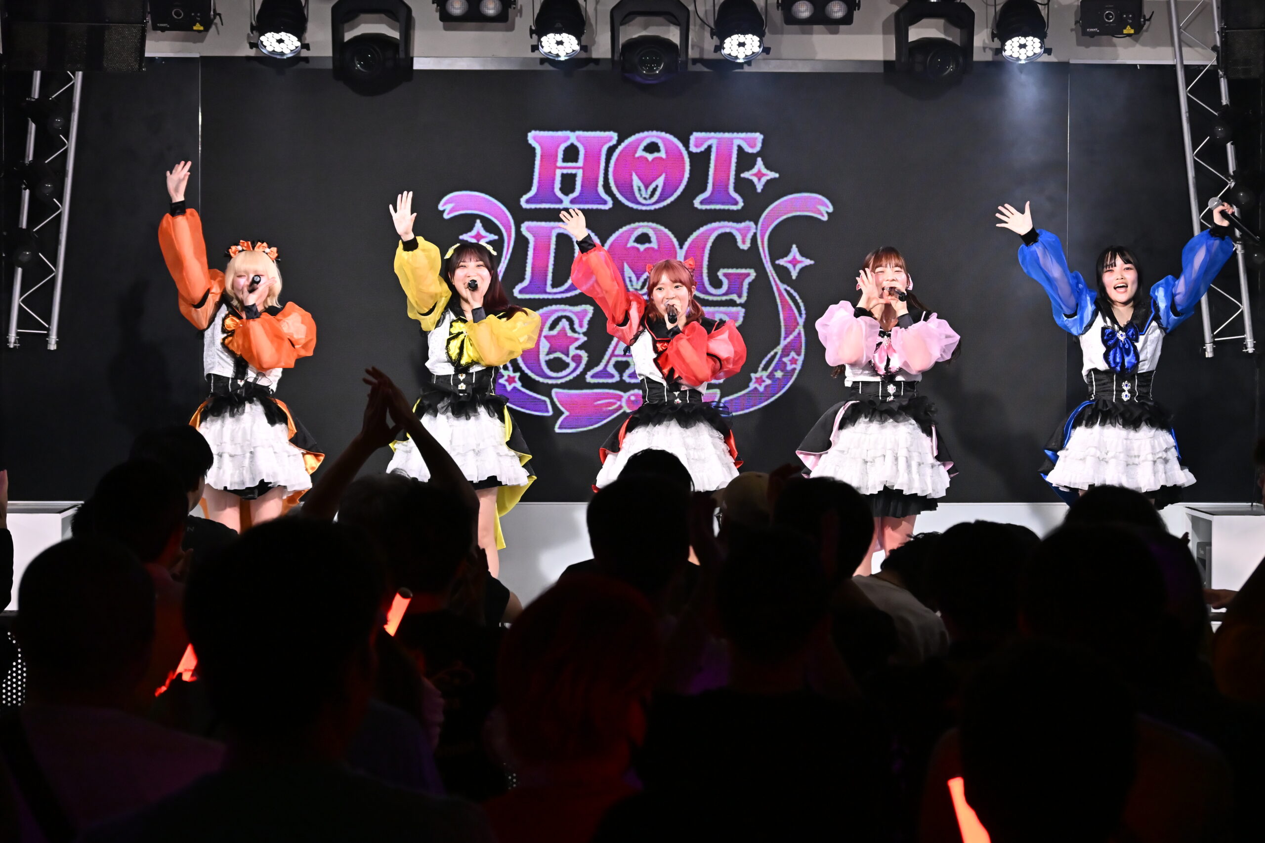 この日を待ちわびた人たちが、本当に多かった?多くの熱い声援を受け、HOT DOG CATのライブは『楕円形メリーゴーランド』から始まった。メンバーを一新。演者が変われば、グループの雰囲気も変わるのは当たり前。新たな血を宿したHOT DOG CATは、とにかく明るかった。輝きに満ちたいう言葉が相応しいくらいに、5人とも、その姿はキラキラ眩しかった。ちょっとたどたどしい自己紹介は、ご愛嬌。活動初期から歌い継いできた『オフィーリア〜君に会いたくて〜』でも、最後に届けた『オリンピック・ハイテンション』も、そう。5人とも、まずは自分たちが輝くことが、HOT DOG CATを未来へ導くことを自覚している。だからこそ笑顔で、目の前にいる人たちに力いっぱい元気を届けていた。 何事にも天真爛漫な姿で、全力でぶつかっていく、あのHOT DOG CATが目の前にいた。カラフルな5つの甘いドロップのような今のHOT DOG CATが、これからどんな甘い刺激と楽しさを味わわせてくれるのかが楽しみになってきた。