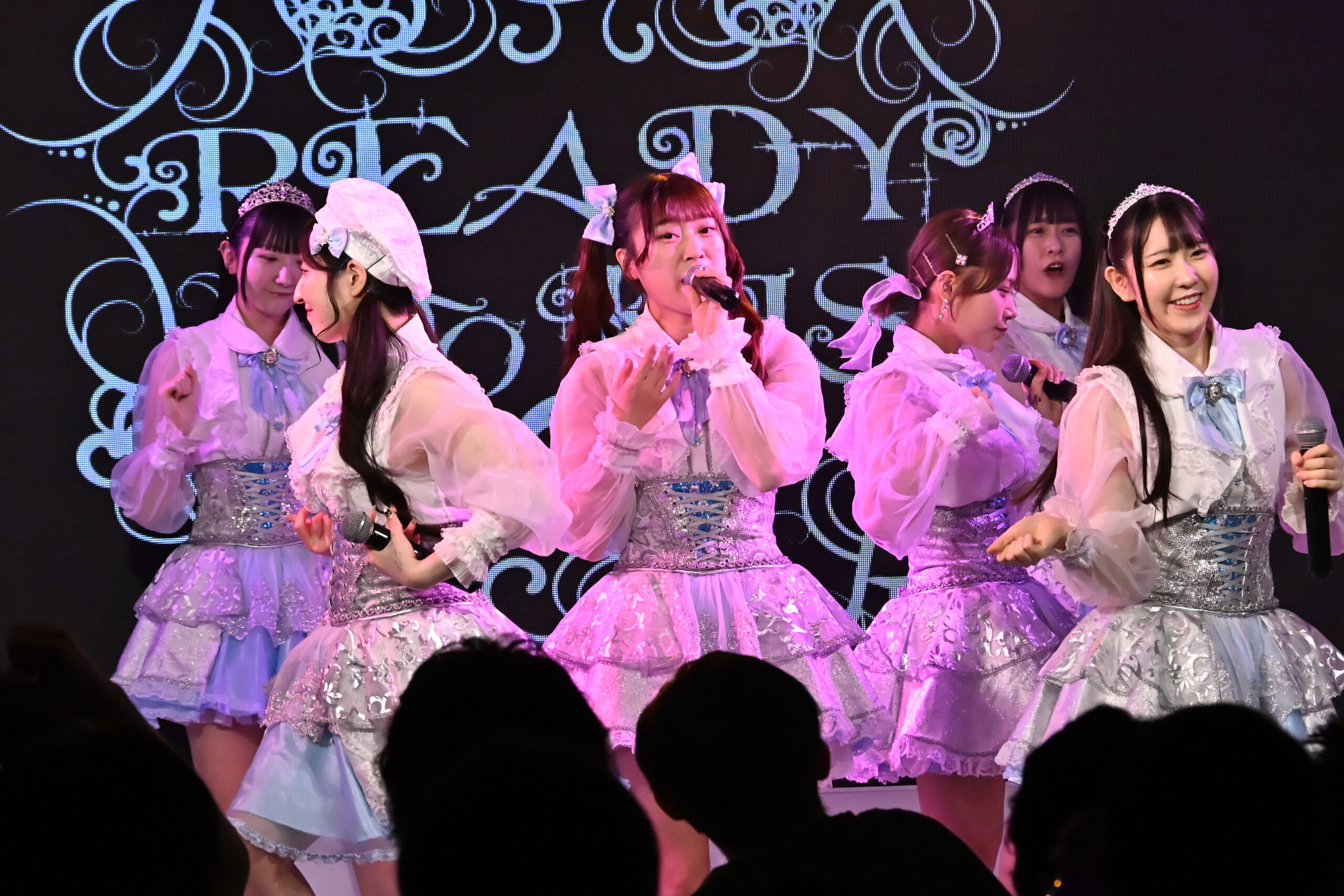 『READY TO KISS』から始まったREADY TO KISSのライブ。この日は、6人でパフォーマンス。永遠の愛らしさを魅力にしている今のメンバーらしい、眩しいチャーミングな姿がそこにはあった。甘えた素振りで歌う6人の姿も印象的だ。この日は、『I GET CRAZY』や『STAR LIGHT〜星色のこの気持ち、空に映れ〜』など、胸をときめかす曲をラインアップ。甘い声で歌う彼女たちの歌と声をかけあうたびに、一緒にドキドキした気持ちが膨らんでゆく。『I GET CRAZY』の中から飛び出す、「君が好きです」の声に「俺もー」と熱情した声を返すやりとりや、メンバーたちの甘えた声も印象的だ。『STAR LIGHT〜星色のこの気持ち、空に映れ〜』の歌唱中にずっと上がっていた、観客たちの熱情した声。フロアから「お前が一番」コールの飛び交った『限界DRIP』では、6人がさらに胸をときめかせ、積極的にアプローチ。最後に歌った『ムテキモード』まで、観客たちの「好き」というハートの鼓動を高めてゆくライブ姿を見せながら、フロアの熱を上げ続けていった。