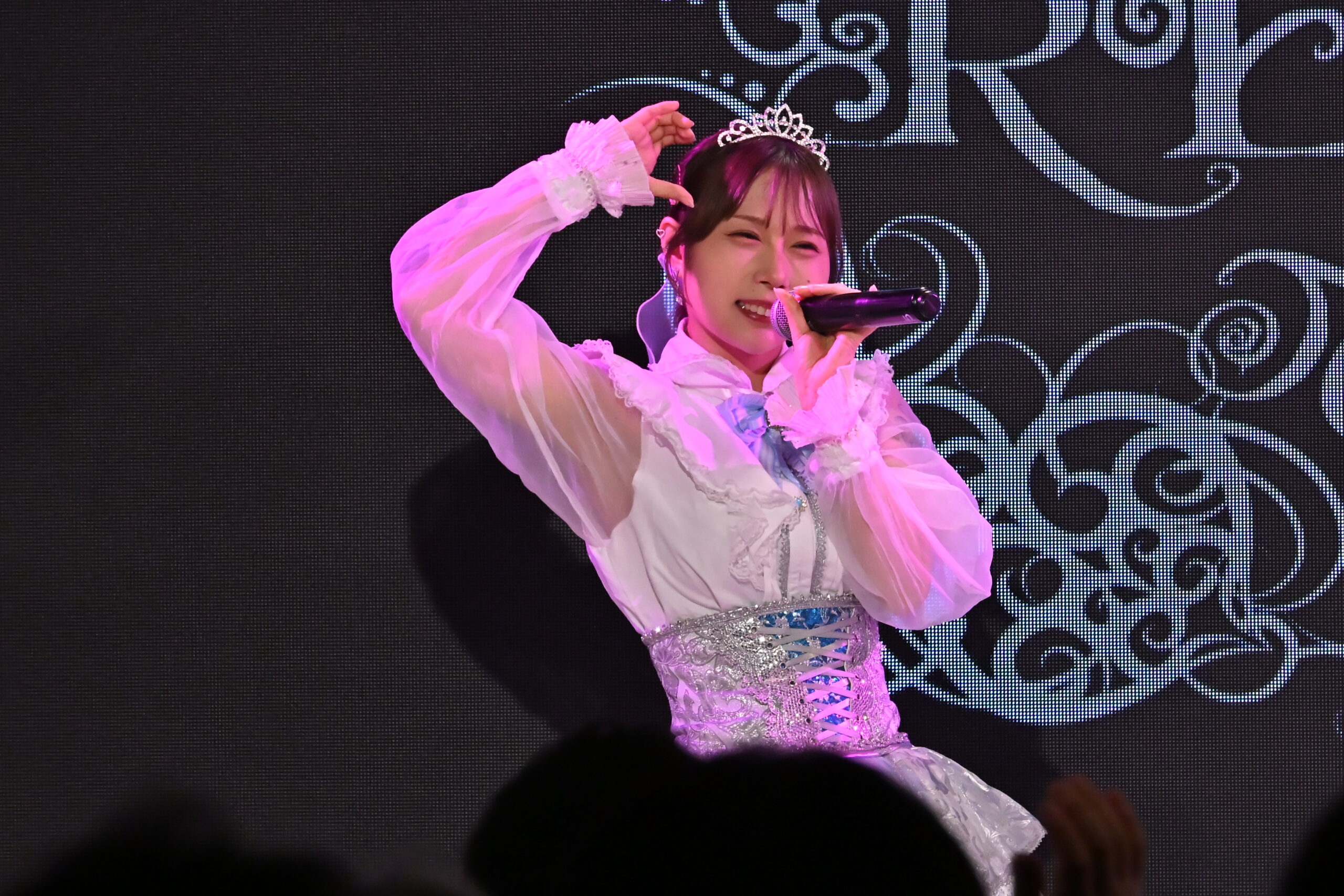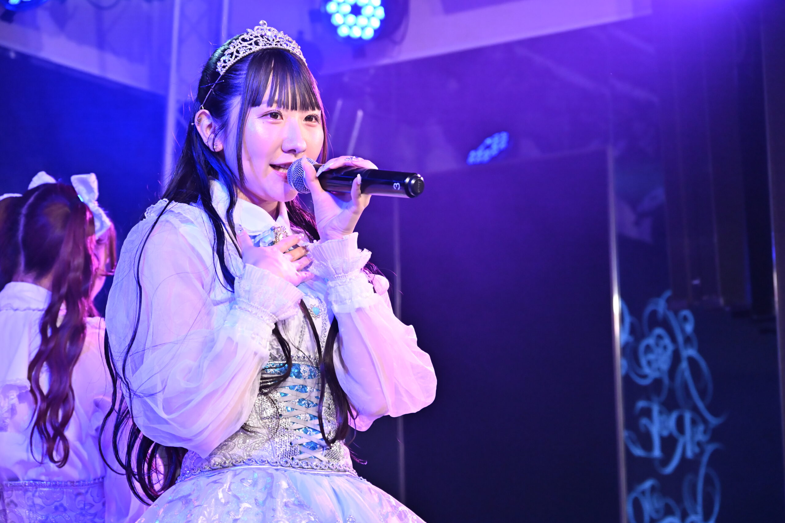 最後は、READY TO KISSとSAY-LAのメンバーをミックスしたシャッフルユニットのブロック。最初に登場したのが、SAY-LAの、咲山しほ・小椋妃奈乃・とわん・神崎セナ、READY TO KISSのもりしょうこ・瀬戸佳凛・小松かやの。このメンバーで歌ったのが、SAY-LAの『感情リバーシブル』。ちょっとセンチな乙女の恋心を、このメンバーは明るく元気に歌唱。途中、眩しい声で観客たちを巻き込んでゆくなど、終始、晴れた表情で彼女たちは歌を届けてくれた。「好き」の気持ちの中にある表と裏の感情を記したこの曲だが、このメンバーが歌うと、表と裏どっちも同じ感情のように見えてきた。