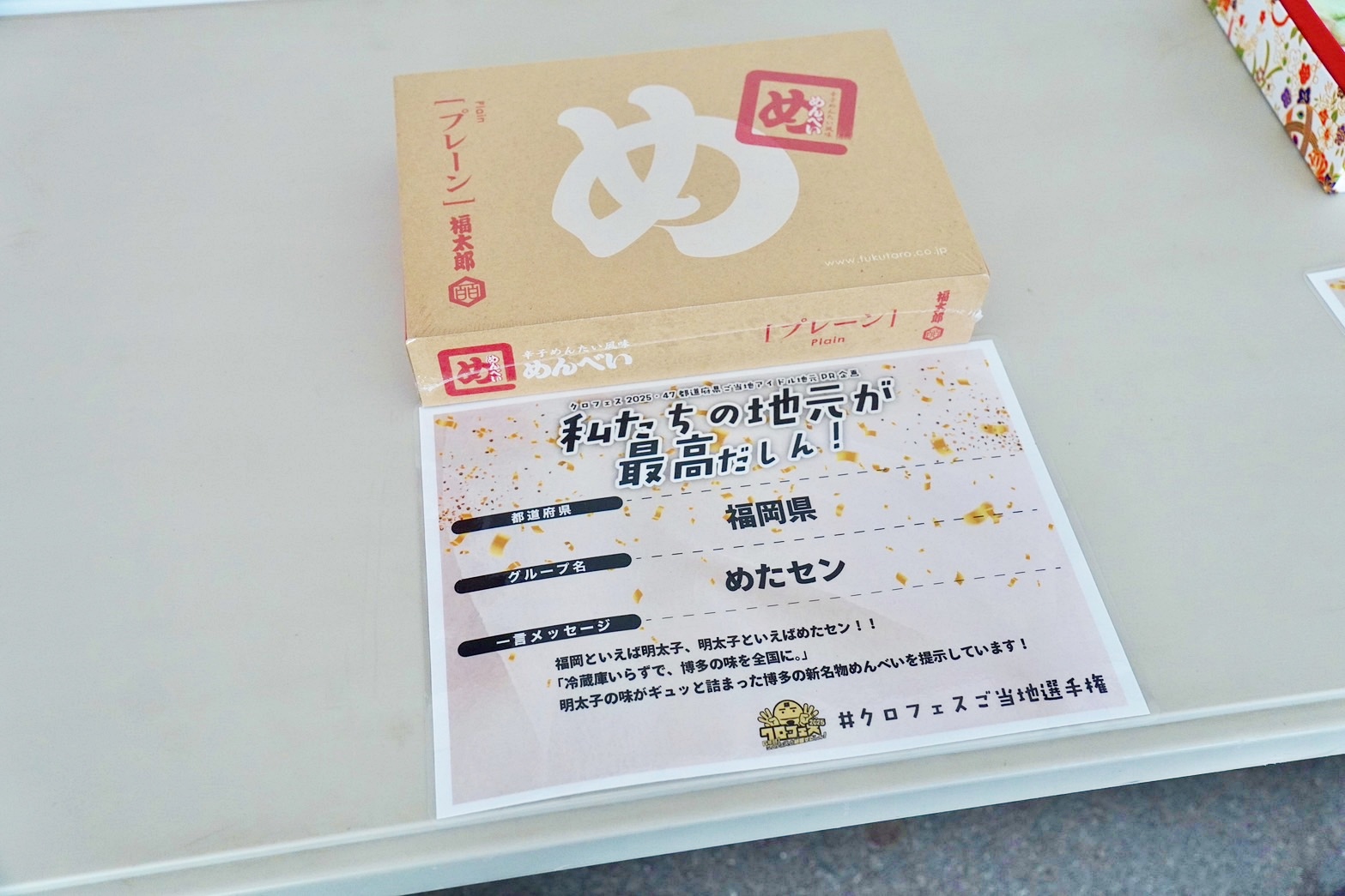地元PR企画「私たちの地元が最高だしん!」では「めんべい」を展示。ピリリ系を掲げる「めたセン」にピッタリ!