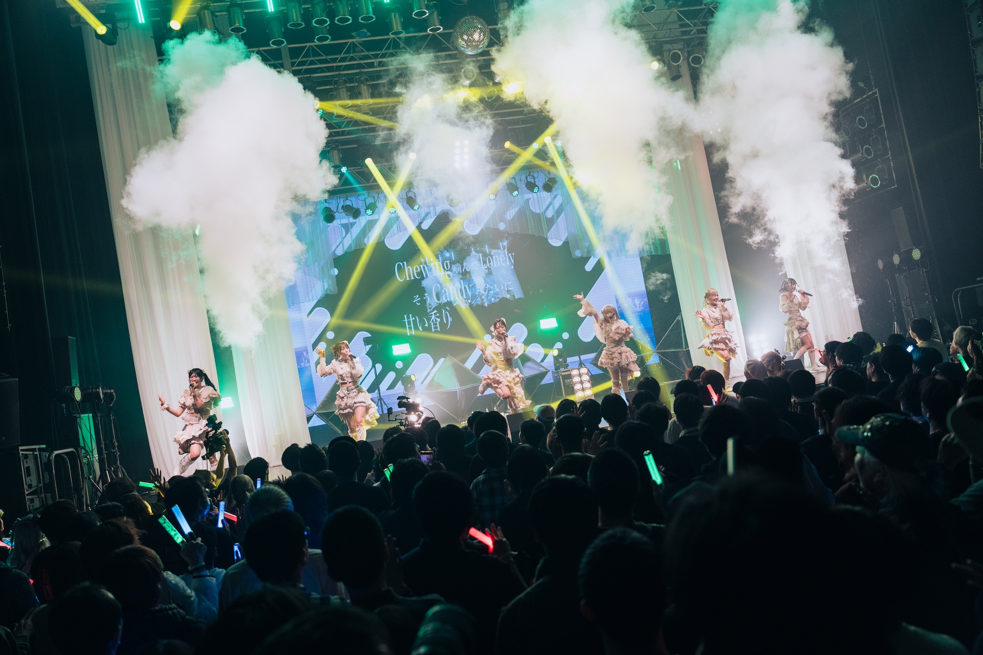 そして雲丹うにから「ついに5年目に突入しようとしています。デビューしてからの4年間はうまくいくことばっかりではなくて、自分たちが思っている理想と現実がうまくあわなくて、好きになってもらえるにはどうしたらいいんだろうとか沢山考えて、葛藤しては挑戦して、また失敗してその繰り返しのそんな4年間でした。でもそれを乗り越えてようやく今日夢だったここO-EASTでのワンマンライブを開催することができました!ここまでくるのに4年もかかってしまったけれど、それでも今こうして私たちがこの6人でここに立てているのは今日O-EASTにきてくれているみんな、そして配信を見てくれているみんなのおかげです!本当に本当にありがとうございます!
